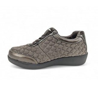 Zapato Sport para mujer, conformado en suave tejido acolchado con detalle de tachas metálicas combinado con napa brillo al tono. Interior realizado en material textil técnico y cuello muy acolchado. Es un zapato de estilo urbano y actual. Cierre mediante cordón elástico ajustable para una rápida sujeción al pie. Hecho por la marca Doctor Cutillas. Referencia----100476 Cod:   38611 Color...