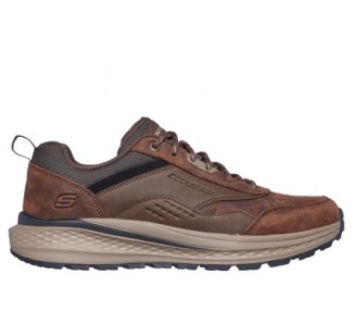 Disfruta de la comodidad de estilo clásico de Skechers Relaxed Fit®: Garlan - Deno. Cuenta con una parte superior de piel vegana waterproof con cordones, una suela Skechers Air-Cooled Memory Foam® con infusión de carbón y amortiguación Goga Mat Arch™ para un mejor apoyo. Referencia----41096 COD:   205235/BRN Color                                  Marrón Suela...