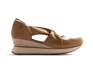 Sandalia Bio con cuña para mujer y joven, formando la pala por varias tiras y terminada por dos hebillas para una buena sujeción al pie. Planta Bio anatómica en piel serraje acolchado de gran confort y transpirable. Podrás usarlas para todos los días y también para casa. Fabricado por la marca Autenti.