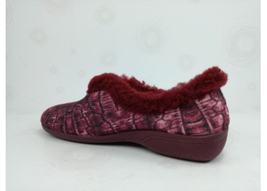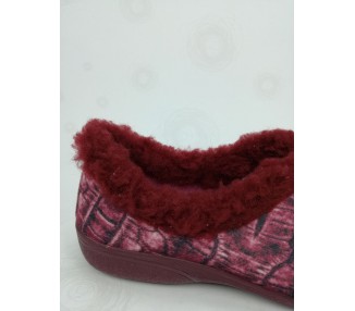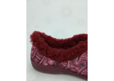 Bonita zapatilla de casa para señora, con motivos efecto coco en diferentes tonos relacionados y cordón de suave rizo que recorre todo el contorno. Realizada en textil, con forro textil que mantiene el pie caliente. Suela flexible y antideslizante. Fabricado en España por la marca CUMBRES.