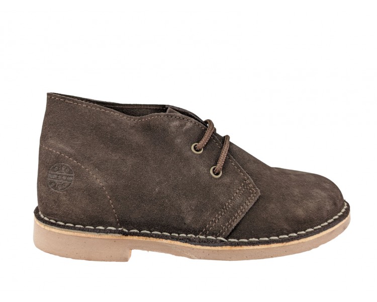 Botín carapijo o safari, realizado en piel serraje sin forro. Piso de crepé muy resistente y flexible. Es un artículo de siempre, cómodo y muy versátil. Hecho en España.