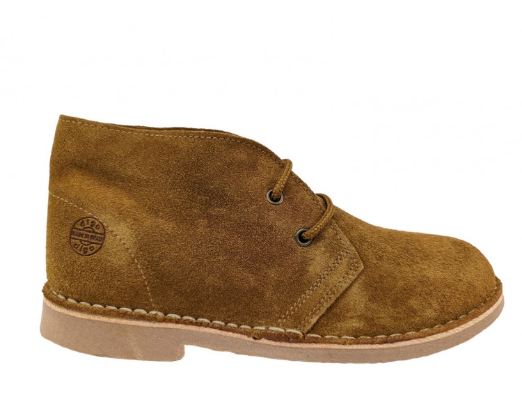 Botín carapijo o safari, realizado en piel serraje sin forro. Piso de crepé muy resistente y flexible. Es un artículo de siempre, cómodo y muy versátil. Hecho en España.