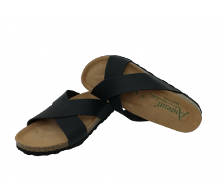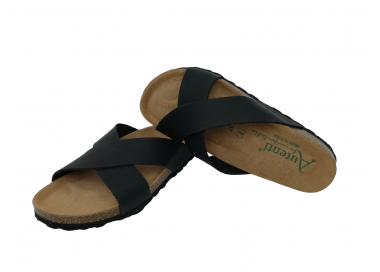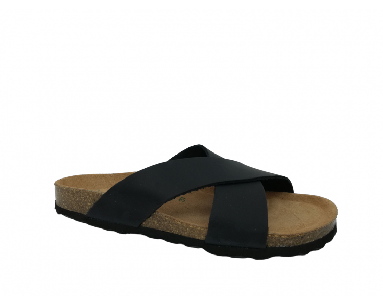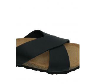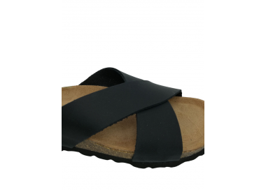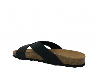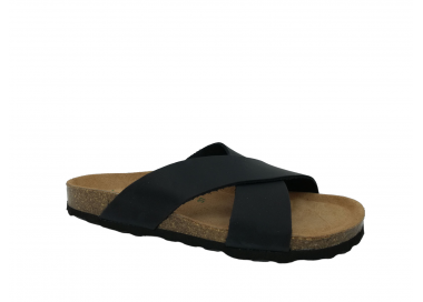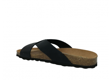 Sandalia Bio para mujer, formada por dos tiras de piel engrasada cruzadas en la pala. Planta Bio anatómica en serraje acolchado de gran confort y transpirable. Podrás usarlas para todos los días y también para casa. Fabricado en España.