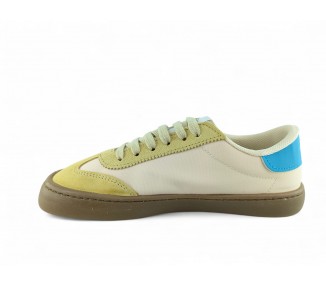 Están diseñadas con una horma ancha que permite una total libertad de movimiento de los dedos, asegurando un calce natural. Su suela fina y flexible, junto con la plantilla extraíble, ofrecen una sensación de ligereza y comodidad ideal para el día a día. Están fabricadas en España en piel blanca con piezas serraje. La V de victoria lateral y la pieza trasera contrastan en color a juego. Suela...