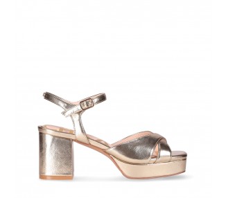 Sandalias de tacón ancho con plataforma delantera que aporta altura sin perder estabilidad. Destacan sus tiras cruzadas en la pala y el cierre de hebilla al tobillo que asegura un ajuste perfecto. Ideales para brillar con estilo en tus ocasiones especiales. Hecha por la marca Chica10.