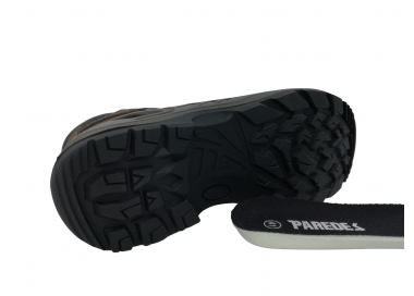 Bota trekking para hombre, realizada en piel nobuck hidrofugada "Waterpoof". Cuello en color negro acolchado para mayor protección del tobillo. Plantilla extraíble y suela bicolor de goma para mayor ligereza y agarre.