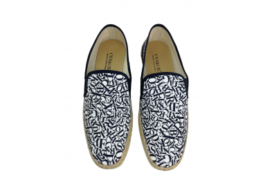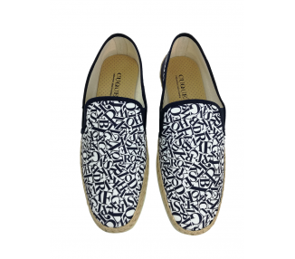 Esta zapatilla combina calidad, comodidad y diseño exclusivo. Zapatillas vulcanizadas de algodón 100% orgánico y tintadas por métodos tradicionales no contaminantes y terminación estampada con motivos de letras mayúsculas. Piso de goma flexible y vira de yute natural. Detalle en contrafuerte de nilon. ¡¡ Muy veraniega ¡¡.Hecho por la marca Konpas.