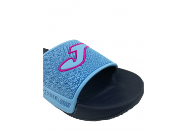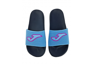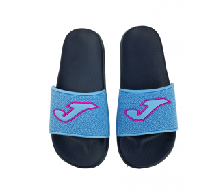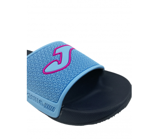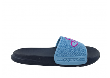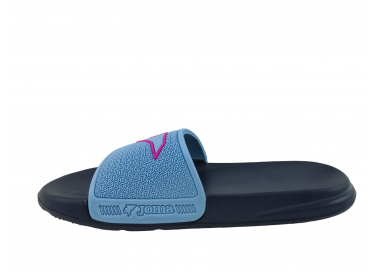 Chancla deportiva de mujer y joven ultraligera con adorno de puntitos geométricos en el empeine y serigrafía de la marca Joma en color rosa. Planta anatómica para más comodidad y forro interior del empeine textil. Suela resistente a la abrasión. Ideal para la playa, piscina y también para casa. Hechas por la marca Joma.