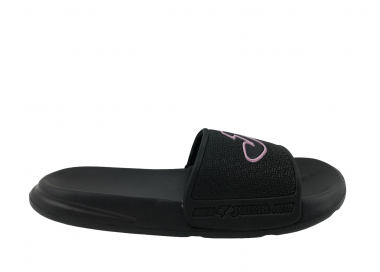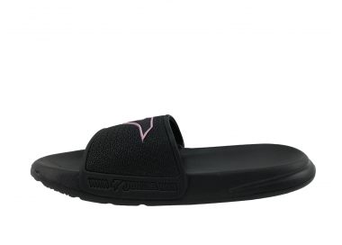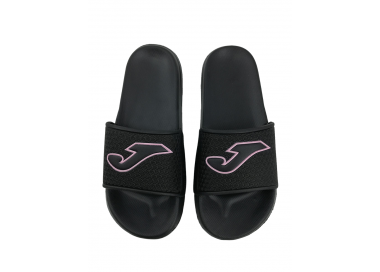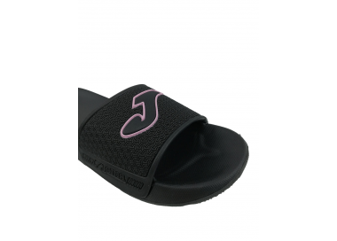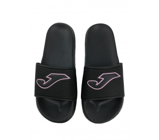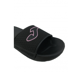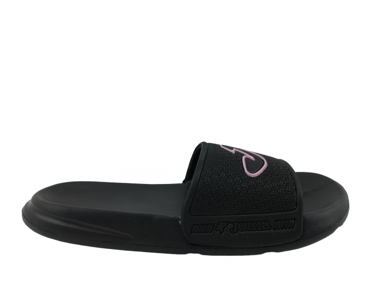 Chancla deportiva de mujer y joven ultraligera con adorno de puntitos geométricos en el empeine y serigrafía de la marca Joma en color rosa. Planta anatómica para más comodidad y forro interior del empeine textil. Suela resistente a la abrasión. Ideal para la playa, piscina y también para casa. Hechas por la marca Joma.