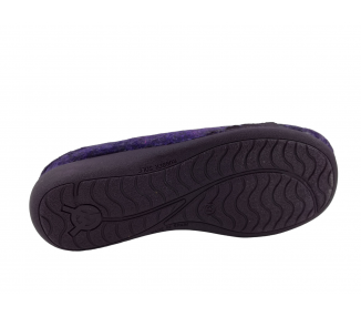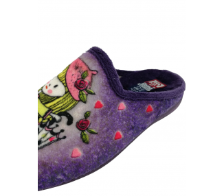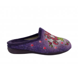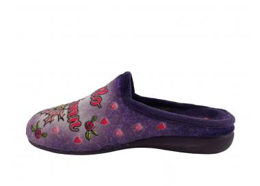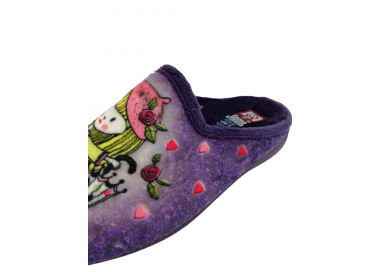 Zapatilla de casa con cuña para señora, con la pala de motivos invernales en colores y talonera en suave paño. Realizada en textil con forro textil que mantiene el pie caliente y suela flexible y antideslizante. Fabricado en España.