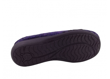 Comodísima zapatilla de andar por casa descalza para mujer y joven. Realizada en textil muy suave y aterciopelado con forro textil afelpado y suela flexible y antideslizante. Ribete de pelo. Motivo en pala de pana gruesa. Plantilla extraíble. Fabricado en España por la marca Gema García.
