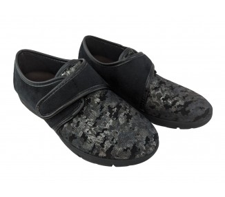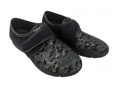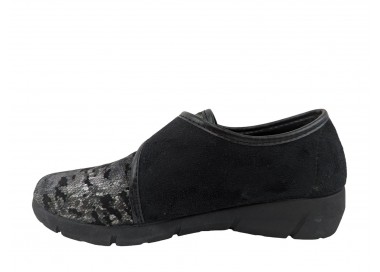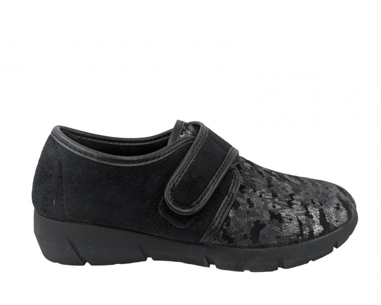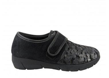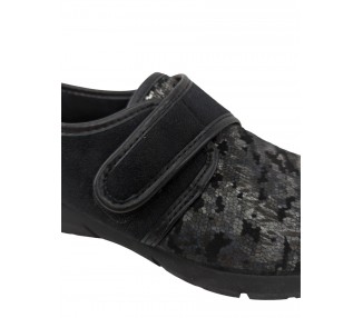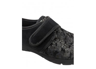 Zapatilla de mujer que se puede utilizar para casa y calle. Realizada en material textil muy suave con cierre de velcro frontal y pala lisa. Interior forrado en felpa muy suave y calentita. Suela antideslizante para mayor seguridad. Fabricado en España por la marca Rodevil.