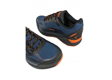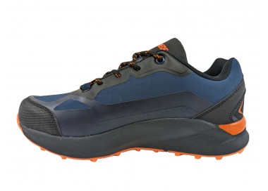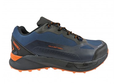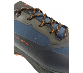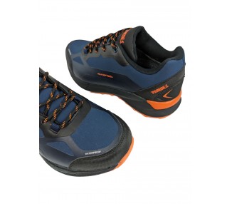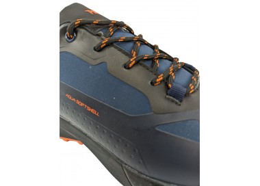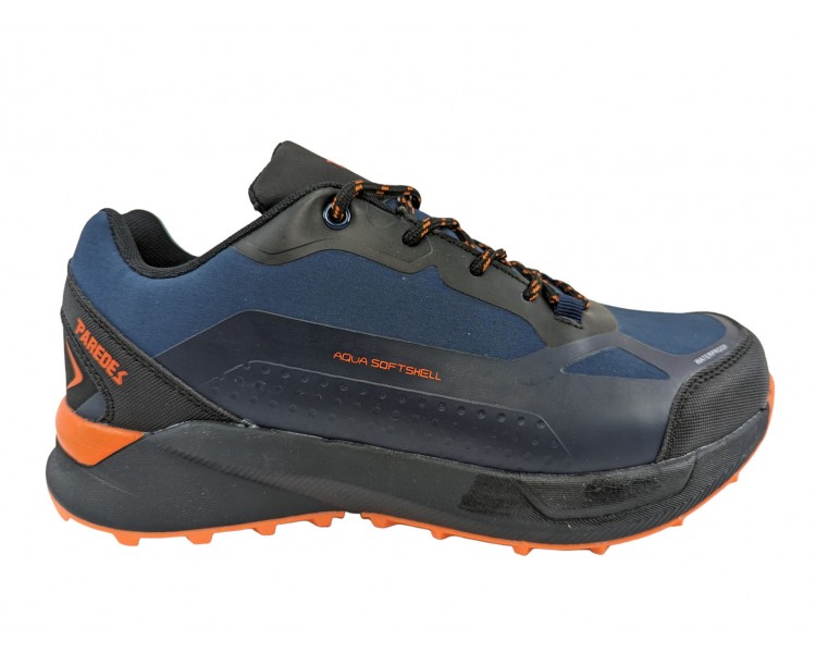 Zapatilla trekking de la marca Paredes para hombre, realizada en textil aqua softshell con paneles de refuerzo en material sintético y refuerzo en goma en puntera, talonera y costados. Forro interior textil con membrana impermeable "waterproof" y plantilla extraíble.