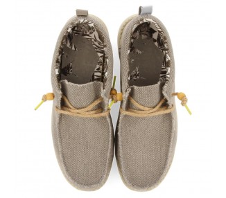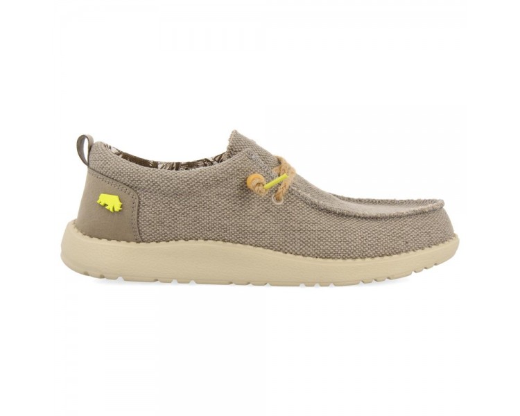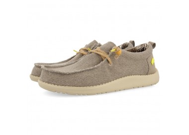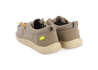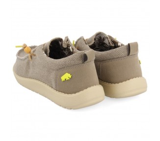 Mocasines color beige estilo wallabee. El corte está hecho de lona lavada y los cordones son de yute. La plantilla es textil de PE extraíble y la suela es de EVA inyectada. Los materiales muy ligeros y otorgan una gran confortabilidad al diseño. Este modelo cuenta con el sello PODOLOGIC, que certifica que ha sido fabricado con hormas más anchas, mejorando su flexibilidad. Los modelos PODOLOGIC también se adaptan a la perfección a los pies más sensibles y delicados consiguiendo el mayor confort. Este proyecto ha sido diseñado junto al Ilustre Colegio Oficial de Podólogos de la Comunidad Valenciana (ICOPCV) para promover el cuidado, conocimiento y atención que la salud de los pies requiere. Fabricado por la marca Gioseppo.