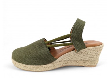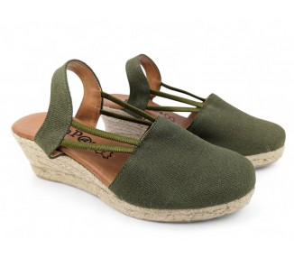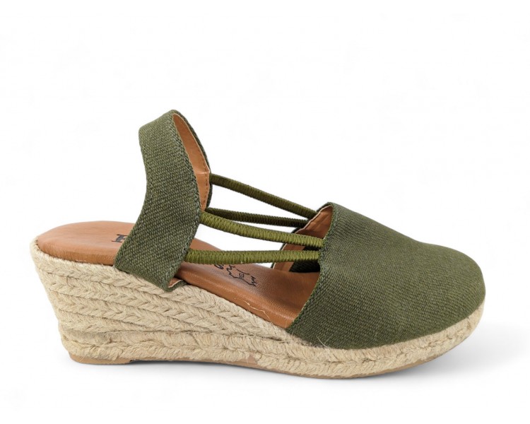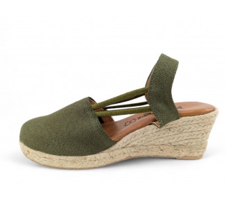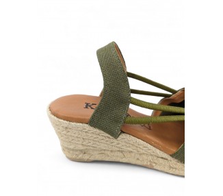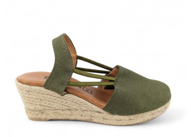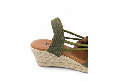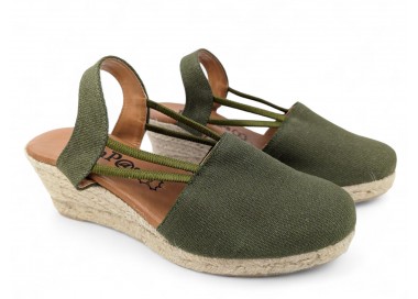 Alpargata para mujer y joven, fabricada en lona textil lisa muy suave. Los elásticos unen la talonera con la pala con lo que le proporciona una correcta y elástica sujeción. Planta de piel acolchada de gran confort y suavidad. Cuña de yute y suela de goma para mayor agarre. Hecho por la marca Konpas.