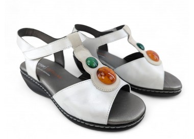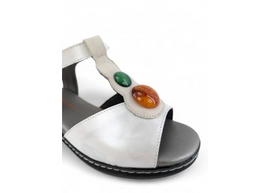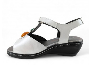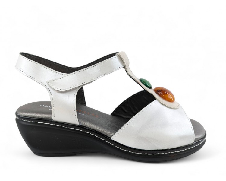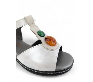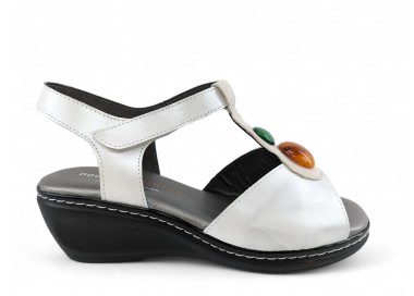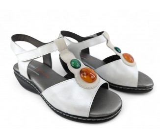 Sandalia de la marca Doctor Cutillas para mujer. Elaborada en piel con detalles de piedras brillantes en la pala. Cuenta con cierre de velcro en el lateral exterior. La sandalia presenta una abertura en la parte frontal dejando los dedos del pie al descubierto. Forro interior de piel y plantilla acolchada y blanda. Fabricado en España.