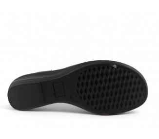Sandalia de cuña media comodísima para mujer de la marca 48 Hours, que está fabricada en piel tubular muy suave combinada con un detalle en cordón que une el talón y la pala. Cierre de velcro ajustable en el talón para una rápida sujeción del pié. Plantilla de gel de máximo confort.
