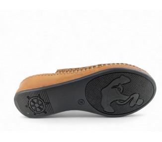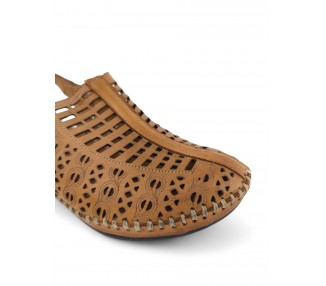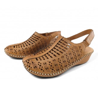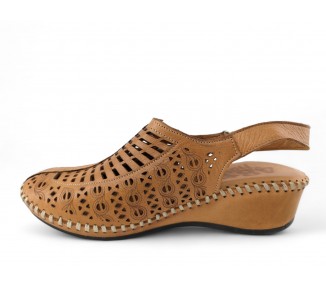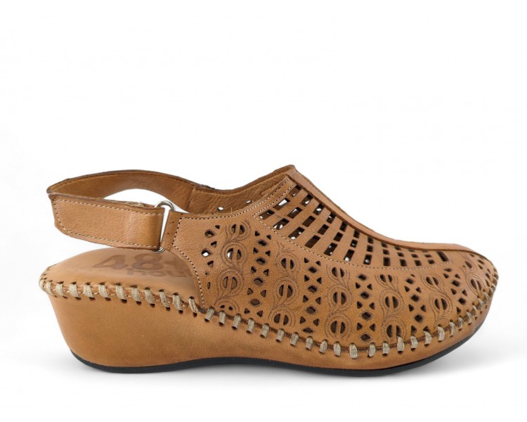 Sandalia para mujer, realizada en piel de primera calidad súper suave, con la puntera cerrada y perforados troquelados. Talonera abierta. Cierre mediante pulsera con velcro que facilita su calce y ajuste al pie. Suela cosida al corte con detalle de pespunte visto en contraste. Hecho por la marca 48 Hours.