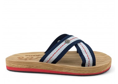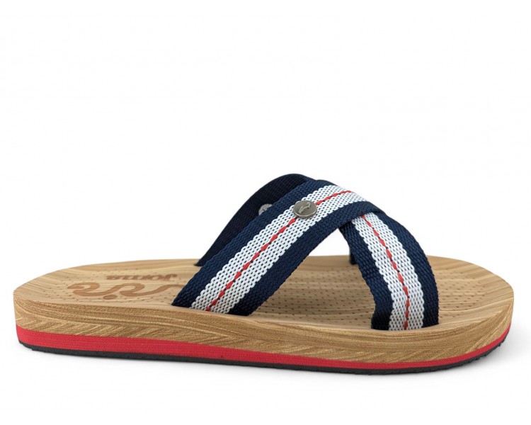 Chancla de hombre y joven, formada por dos tiras cruzadas para la sujeción del pie. Hechas en material textil y sintético muy cómodo y duradero. Media suela acolchada con micro perforaciones de gran confort y suavidad en la pisada. Suela resistente a la abrasión. Ideal para la playa, piscina y también para casa. Hecho por la marca Joma.