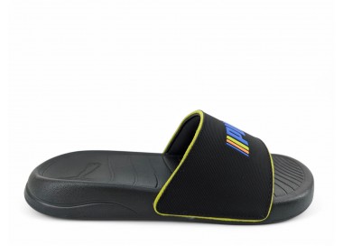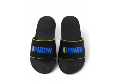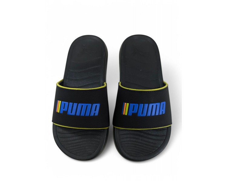 Esclava de la marca Puma, formada por tiras de tejido en textil trenzado con estampado del logo en la plantilla y detalles distintivos de la marca en la pala. Ideal para la playa, piscina y casa.