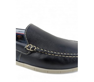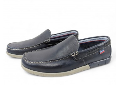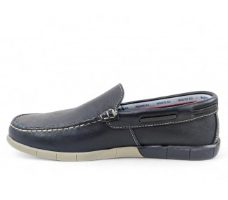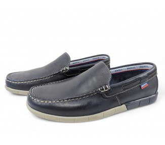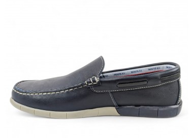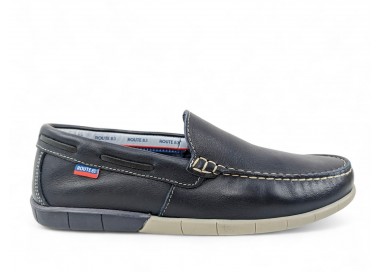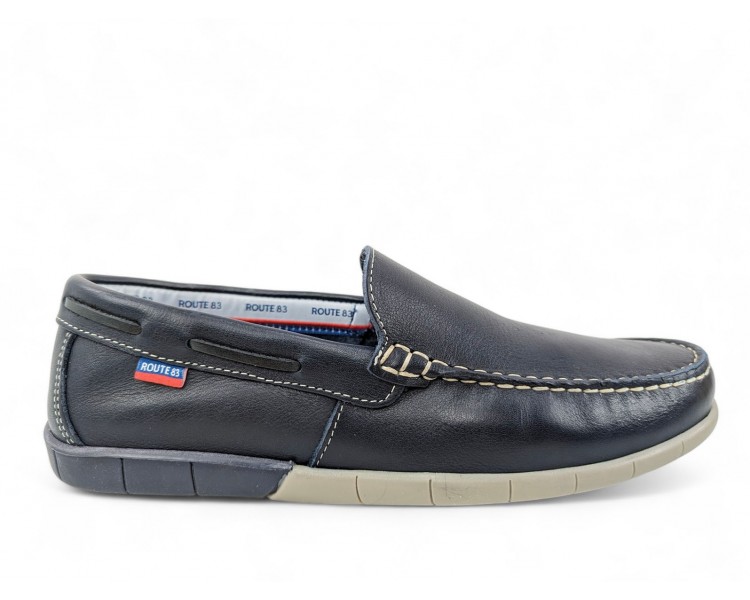 Mocasín de hombre, elaborado en piel de gran calidad y muy flexible. Pala lisa pespunteada en hilo de color blanco. Cuenta con el forro en piel y plantilla de piel conformada. Suela de goma muy flexible y antideslizante. Fabricado por la marca Route 83.