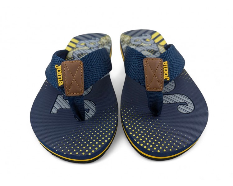 Chancla de hombre y joven, formada por tiras de sujeción en material textil y sintético muy cómodo y duradero. Media suela acolchada. Suela resistente a la abrasión. Ideal para la playa, piscina y también para casa. Hecho por la marca Joma.