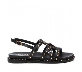 Sandalia de mujer, marca Carmela. Fabricada en piel de alta calidad. Decorado con tachas, dando un toque moderno. Básico para esta temporada. Cómoda planta y suela antideslizante.