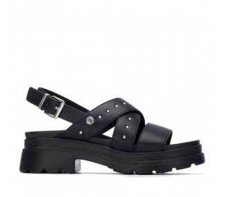 Sandalia de mujer y joven, de la marca Refresh. Fabricada en material que imita a la piel. Tiras decoradas con tachuelas. Pulsera trasera con hebilla para ajustar al tobillo. Suela de goma. Este modelo ha obtenido el certificado vegano por la organización mundial PETA (Organización de los derechos de los animales).