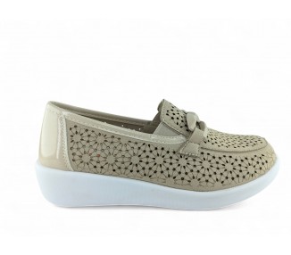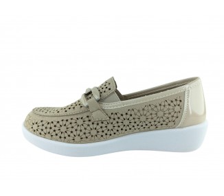 Zapato para mujer de la marca Doctor Cutillas, fabricado en piel y combinado en piel licra grabada al tono con brillo. Forro interior textil técnico suave al tacto y plantilla conformada extraíble. Calce ANCHO ESPECIAL. Cierre de velcro para un ajuste sencillo al pie. Hecho en España por la marca Doctor Cutillas.