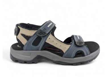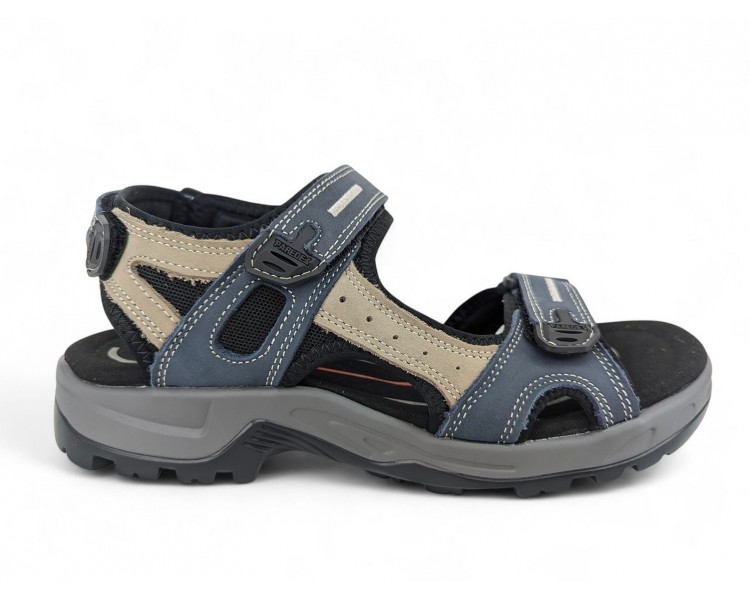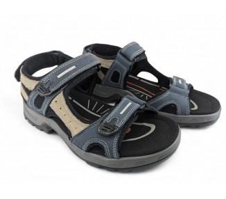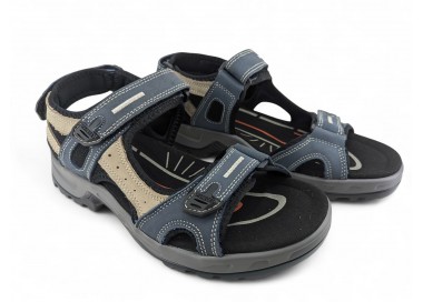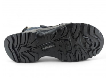 Sandalia de hombre y joven, realizada en piel con costuras acentuadas, cierres de velcro lateral y en el talón. Tiene el forro textil y planta anatómica íntegramente de piel que en días de mucho calor transpira más y te aporta una sensación de frescor inigualable. Fabricado por la marca Paredes.