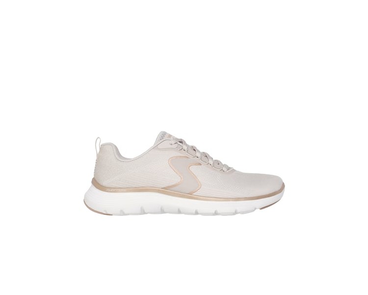 Consigue una nueva perspectiva de estilo deportivo flexible y toda la comodidad que necesitas con el modelo deportivo Skechers Flex Appeal 5.0 - Luxe Glow. Este modelo vegano y con cordones cuenta con una parte superior de malla técnica, ribete metálico y una plantilla con amortiguación Skechers Air-Cooled Memory Foam™.