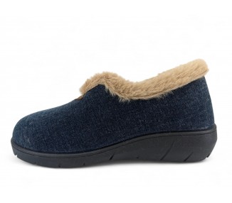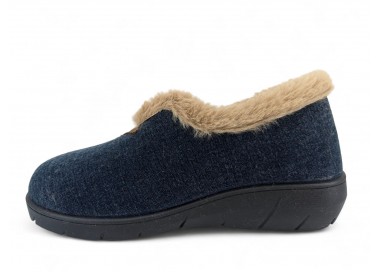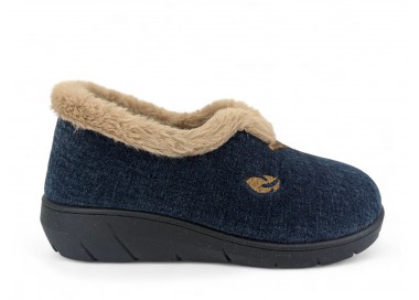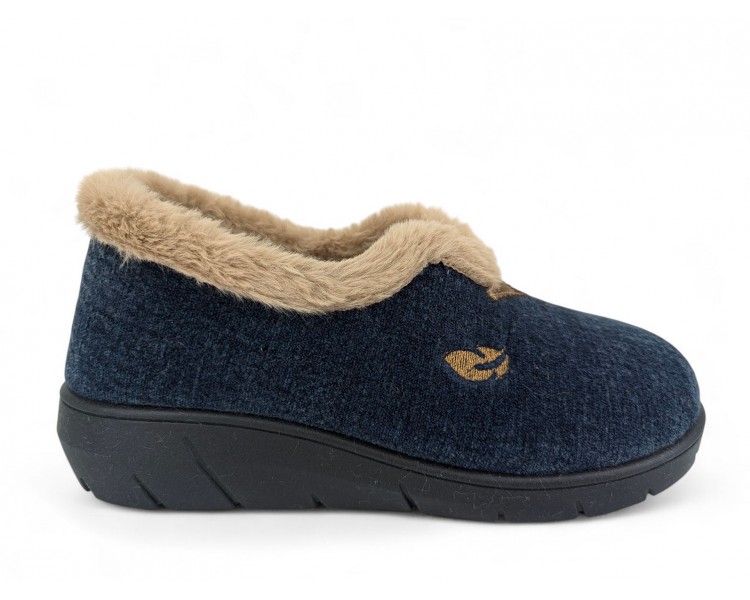 Comodísima zapatilla cerrada de andar por casa para mujer, realizada en material textil con motivos lisos otoñales. Ribete de pelo con plantilla extraíble de espuma de PU transpirable de alta recuperación que se adapta completamente a la anatomía del pie. Fabricada en España por la marca Plumaflex.