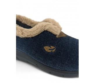 Comodísima zapatilla de andar por casa cerrada para mujer y joven. Realizada en textil muy suave y aterciopelado con forro textil afelpado y suela flexible y antideslizante. Ribete de pelo. Motivo en pala de pana gruesa. Plantilla extraíble. Fabricado en España por la marca Gema García.