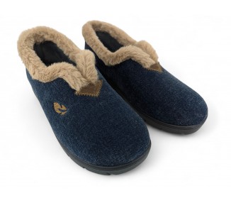 Comodísima zapatilla de andar por casa descalza para hombre topo mocasín. Realizada en textil muy suave y aterciopelado con forro textil afelpado y suela flexible y antideslizante. Plantilla extraíble. Fabricado en España por la marca Rodevil.