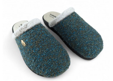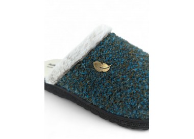 Comodísima zapatilla descalza de andar por casa para mujer, realizada en material textil con motivos jaspeados. Ribete de pelo con plantilla de espuma de PU transpirable de alta recuperación que se adapta completamente a la anatomía del pie. La composición de esta zapatilla contiene aroma a eucalipto con tratamiento antibacterias. Puntera con calce ancho. Fabricada en España por la marca Plumaflex.