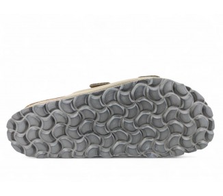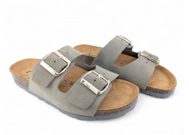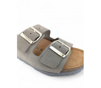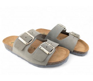 Sandalia Bio para hombre y joven, formada por dos tiras de piel serraje en la pala con hebillas para mejor ajuste al pie. Planta Bio anatómica en serraje acolchado de gran confort y transpirable. Podrás usarlas para todos los días y también para casa. Fabricado por la marca Autenti.