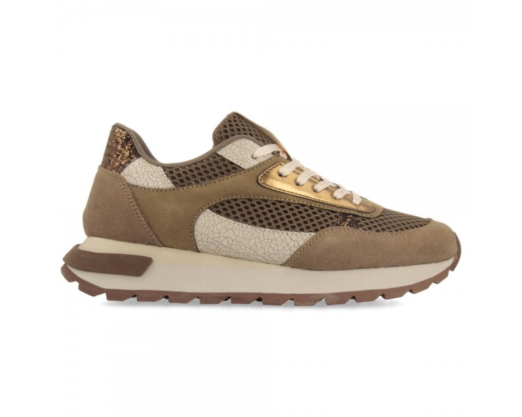 Zapatillas de piel serraje con rejilla. Piezas metalizadas, brillantes y con acabado craquelado. Cuentan con plantilla acolchada y extraíble. Altura plataforma: 4 cm. Este artículo ha sido diseñado bajo el asesoramiento del Ilustre Colegio Oficial de Podólogos de la Comunidad Valenciana (ICOPCV) para garantizar el cuidado y la atención que la salud de los pies requiere.