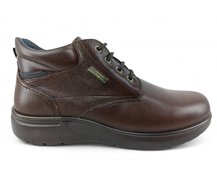 Botín de cordones para hombre diseñado y fabricado por la marca Luisetti. Realizada en piel de gran Calidad con membrana impermeable waterproof. Forro interior textil técnico y la plantilla es extraíble para una mayor higiene. El piso que incorpora es de poliuretano inyectado. Máxima ligereza, confortabilidad, resistencia a la abrasión.
