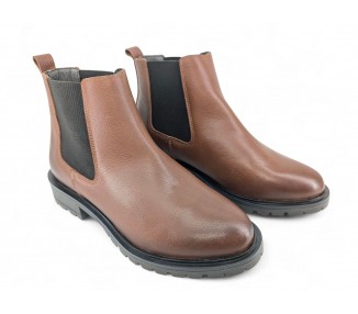 Botín de piel lisa y suave tipo chelsea para señora. El piso que incorpora es de caucho ligero estrado al tono. Ligereza, confortabilidad, resistencia a la abrasión, desgarro y flexión, además de adherencia. Aislante del frío y del calor. Incorpora dos elásticos para un fácil calce por el exterior y por el interior. Fabricadas por la marca Innovashoes.