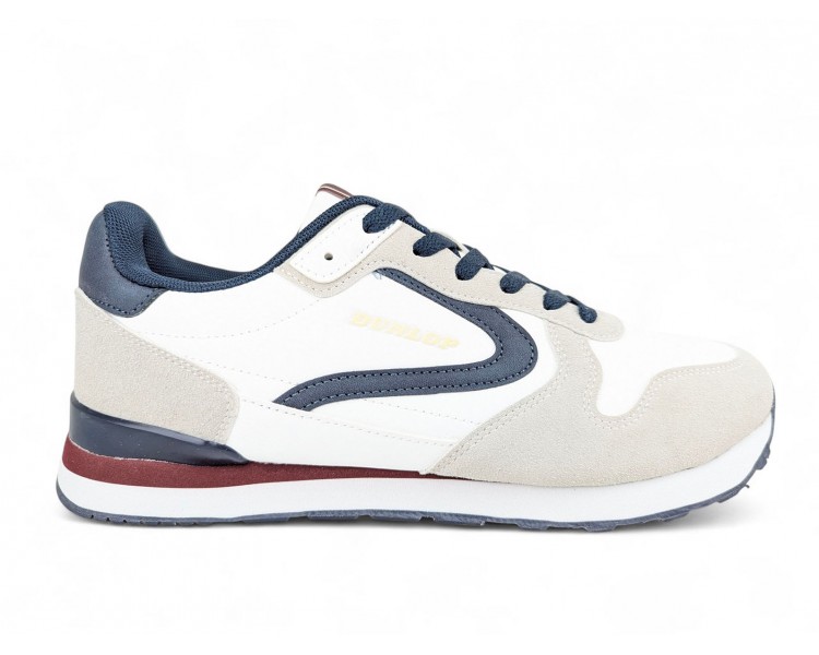 Zapatilla casual para hombre, combinada en mesh vegano y ante sintético con forro interior textil muy acolchado en la embocadura y lengüeta. Entresuela de EVA bicolor, estabilizador en el talón y piso de caucho antideslizante. Su diseño Casual Sport hace que resulte una perfecta elección para llevar en nuestro día a día con total confort en nuestros pies. Fabricado por la marca Dunlop.