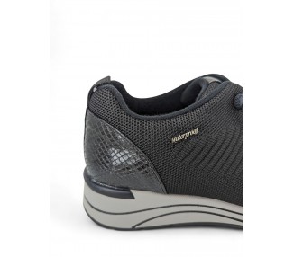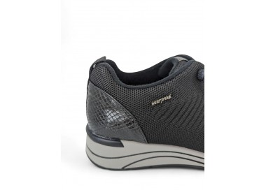 Zapato con cuña para mujer de la marca Treintas, realizado en material textil con forro Waterproof que te aislará de la humedad y de la lluvia y plantilla extraíble para una mayor higiene y memory confort foam para una mayor comodidad. Suela bicolor de Caucho/EVA y cierre con cordón elástico para conseguir un perfecto ajuste al pie y una comodidad superior. Talonera realizada en coco charol. Modelo muy cómo para tu día a día que no pasa de moda.