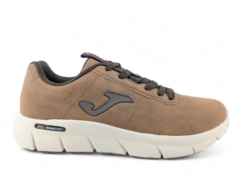 Zapatilla casual para joven y hombre, realizada en piel sintética mesh que repele el agua. Cierre mediante cordón y plantilla de Memory Foam. Suela de caucho inyectado antideslizante gracias a la tecnología Slip-Resistant. Hecho por la marca Joma.