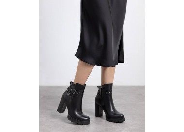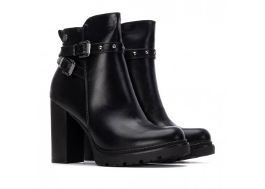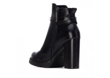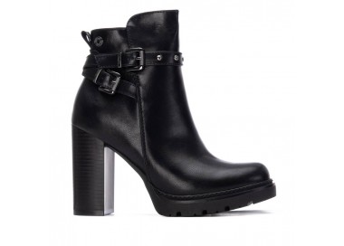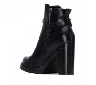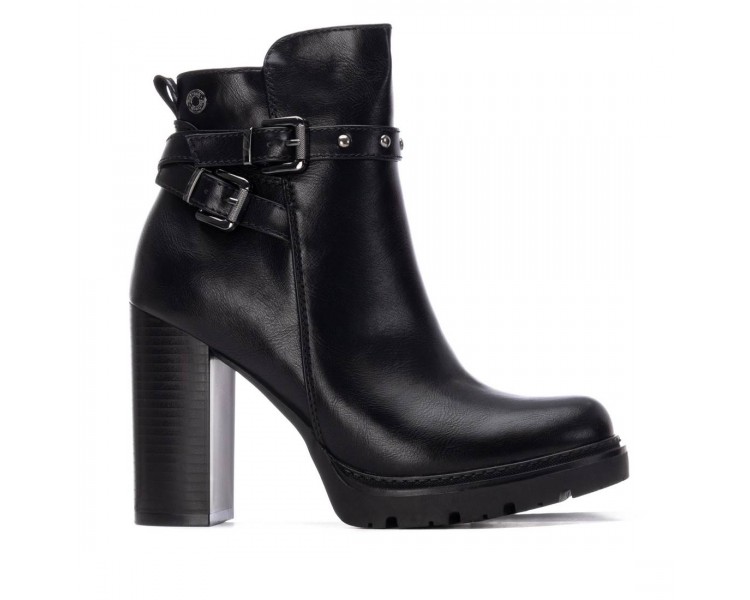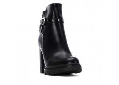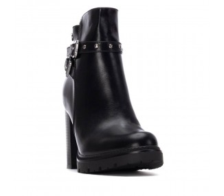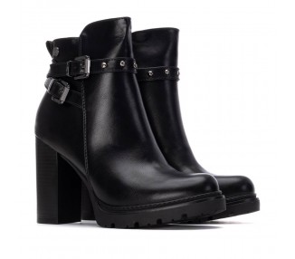 Botín de mujer y joven, de la marca Refresh. Fabricado en un material que imita la piel. Cierre cremallera interior. Correa decorativas con hebillas decorativas. Tirador trasero para facilitar la puesta. Tacón 10 cm con plataforma antideslizante para mayor comodidad. Este modelo ha obtenido el certificado vegano por la organización mundial PETA (Organización de los derechos de los animales).