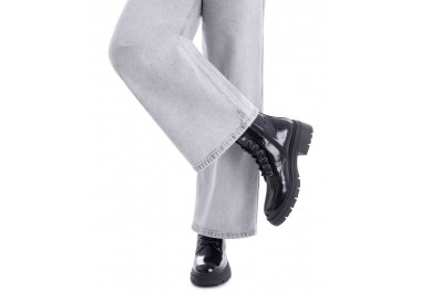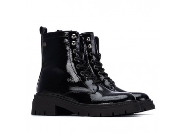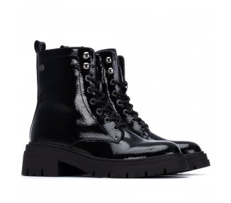 Botín de mujer y joven realizado en un material vegano. Cierre mediante cremallera y cordones ajustables. Suela gruesa dentada y antideslizante. Tirador trasero para facilitar la puesta. Un básico para esta temporada. Este modelo ha obtenido el certificado vegano por la organización mundial PETA (Organización de los derechos de los animales). Fabricado por la marca Xti.