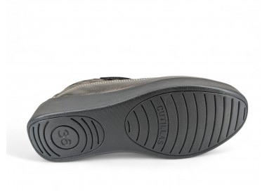 Sandalia para mujer, realizada en piel bombeada de primera calidad. Formada por una tira ancha en la pala unida con dos elásticos en los costados a la talonera. Rápida puesta en el pie. Hecho por la marca Doctor Cutillas.