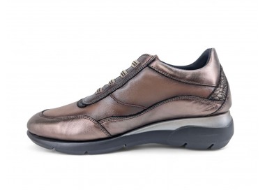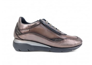Zapato Sport para mujer, conformado en suave tejido acolchado con detalle de tachas metálicas combinado con napa brillo al tono. Interior realizado en material textil técnico y cuello muy acolchado. Es un zapato de estilo urbano y actual. Cierre mediante cordón elástico ajustable para una rápida sujeción al pie. Hecho por la marca Doctor Cutillas.