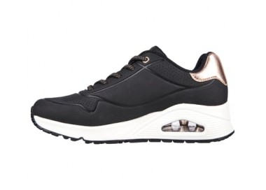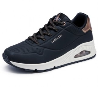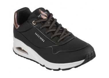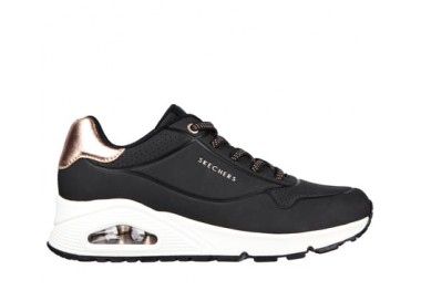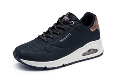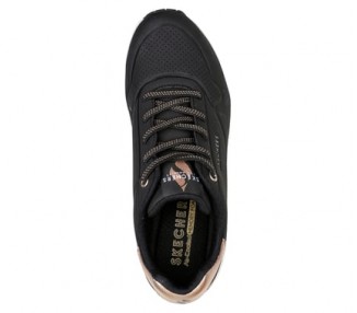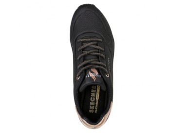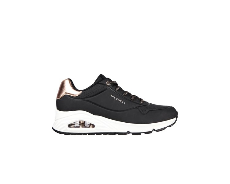 Disfruta ya de un estilo clásico con la comodidad de la Skechers Street™ Uno - Shimmer Away. Esta moderna zapatilla presenta una parte superior de durabuck sintético y con un ribete metálico, cordones elásticos, plantilla Skechers Air-Cooled Memory Foam® y media suela visible Skech-Air® con cámara de aire.