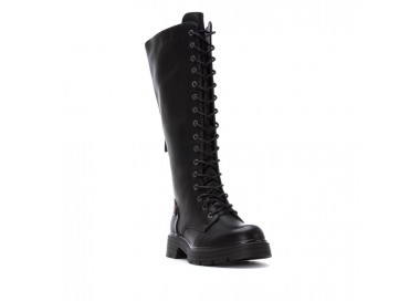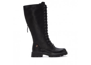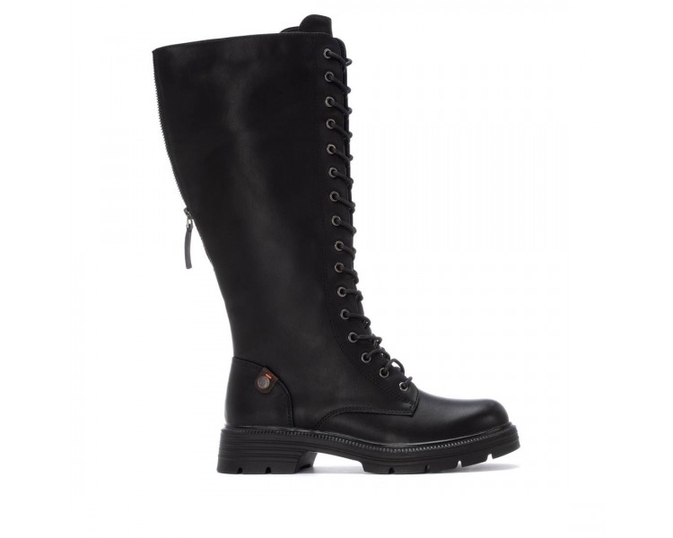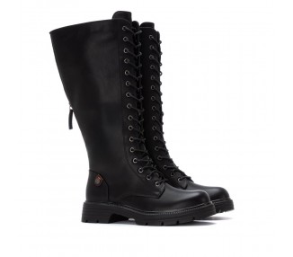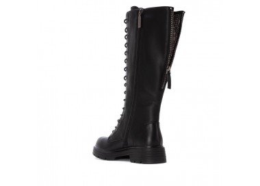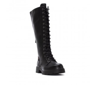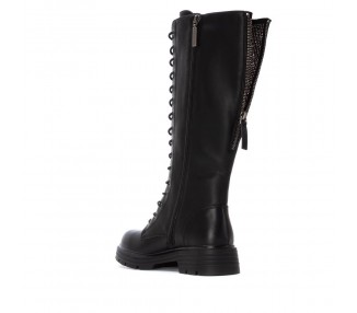Bota de mujer y joven, de la marca Refresh. Fabricada en material que imita a la piel. Cierre mediante cremallera interior y cordones tubulares regulables. Cremallera trasera que deja ver detalle con piedras pequeñas decorativas. Suela con volumen de goma antideslizante. Con plantilla extraíble. Este modelo ha obtenido el certificado vegano por la organización mundial PETA (Organización de los derechos de los animales).