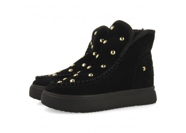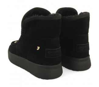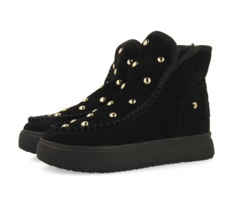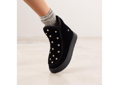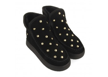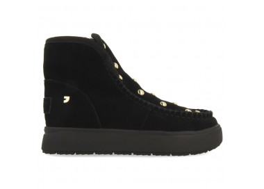 Cómodas, calentitas y en tendencia. Botas de piel color negro estilo australianas de piel serraje con tachuelas y forro interior de pelo. Descubre todas las novedades de botas para mujer en la nueva colección de Gioseppo Woman.