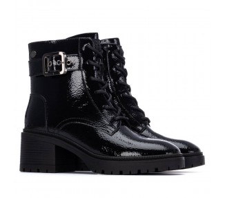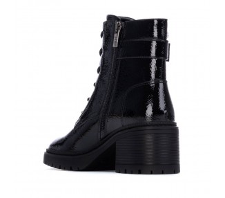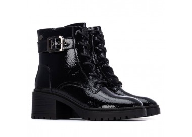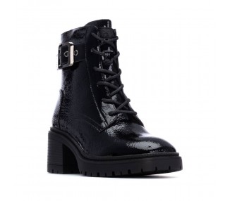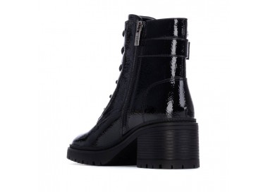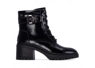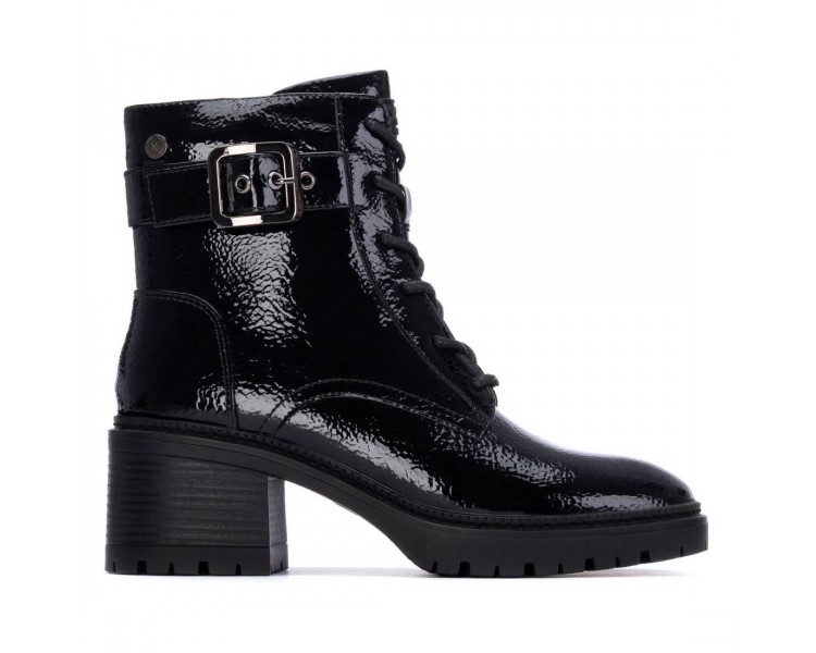 Botín de mujer y joven estilo militar de la marca Xti, fabricado en material charol, que le da un toque brillante y moderno. Con hebilla decorativa en el lateral. Cuenta con una cremallera interior para facilitar la puesta, brindando comodidad y rapidez al calzarse. Ideal para un look audaz y urbano con un toque de distinción. Plantilla extraíble. Este modelo ha obtenido el certificado vegano por la organización mundial PETA (Organización de los derechos de los animales).